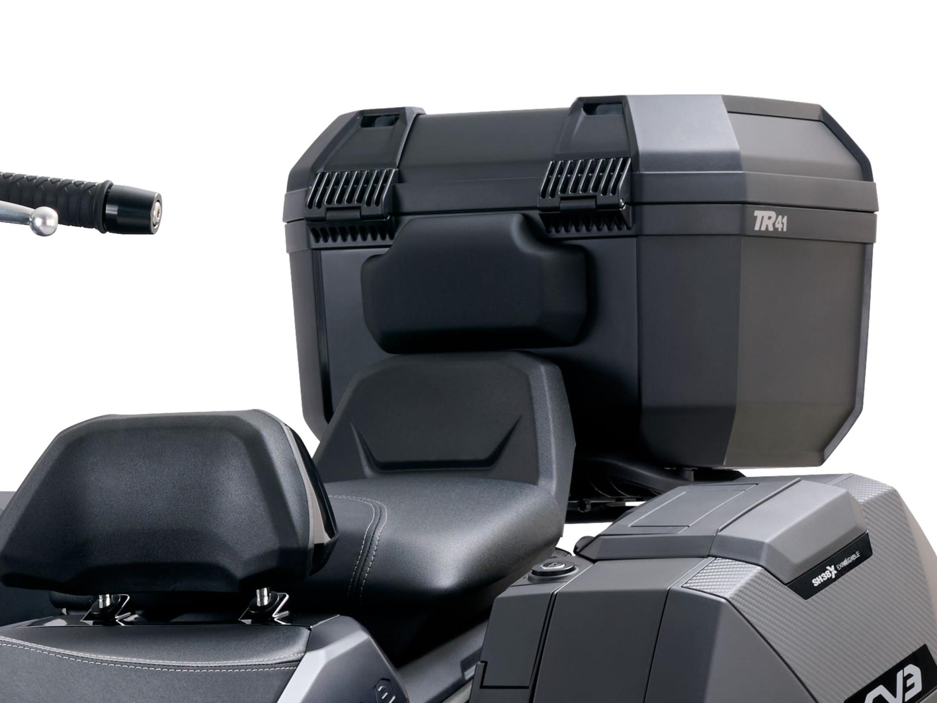 Convierte tu Kymco CV3 en la touring definitiva. Este respaldo ha sido diseñado específicamente para integrarse con la maleta trasera del CV3, ofreciendo un apoyo lumbar ergonómico que transforma por completo la experiencia del pasajero en trayectos largos y urbanos.