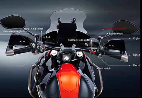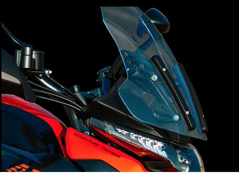 - Pantalla regulable eléctricamente desde la piña para protegerte del viento en carretera.